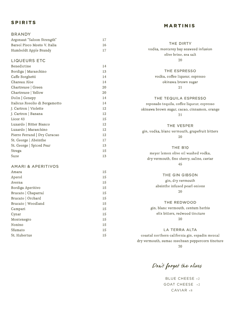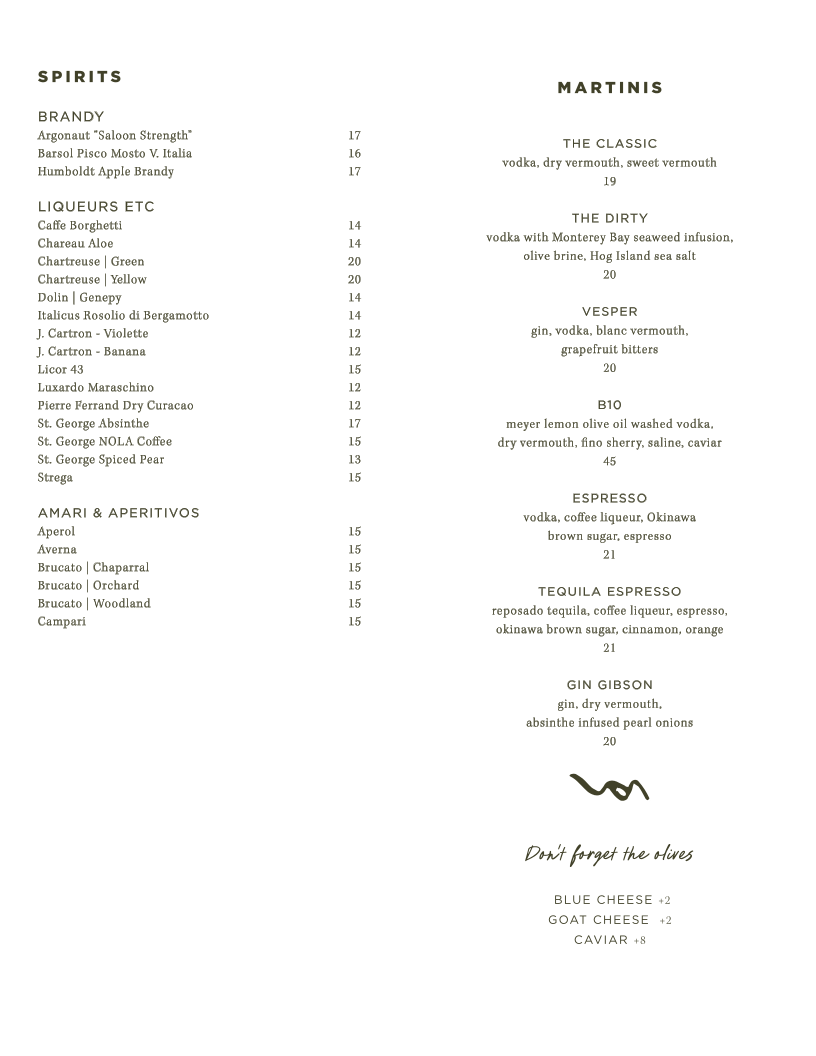 vodka , monterey bay seaweed infusion olive brine, sea salt