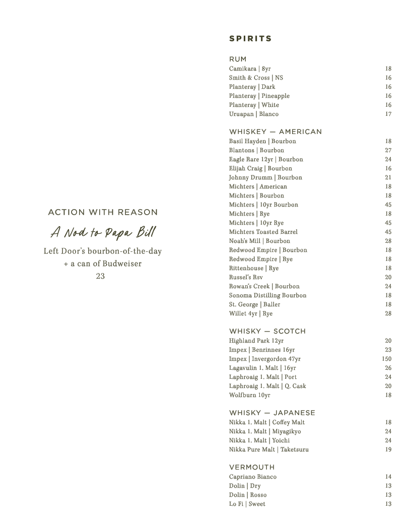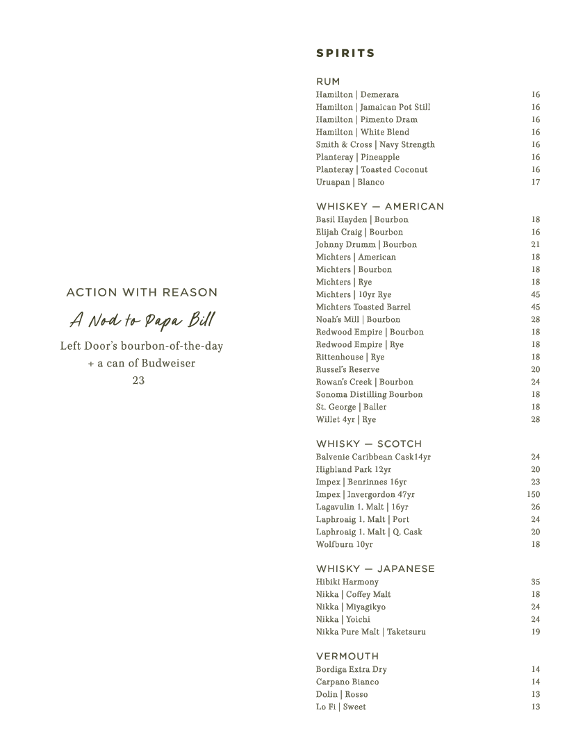 Left Door's bourbon-of-the-day